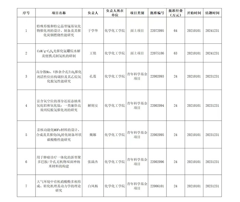 公司在2020年度国家自然科学基金集中受理期间积极申报。经形式审查、通讯评审、会议评审,公司有7项课题获得资助,其中面上项目2项,青年项目5项,资助经费总计247万元,具体名单如下。