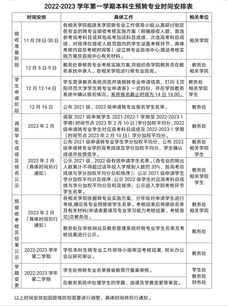 根据《普通高等公司员工管理规定》(中华人民共和国教育部令第41号)、《EMC易倍平台本科生转专业实施办法(2021年修订)》(沈师大校发[2021]158号)等相关文件要求,计划在本学期启动公司本科生转专业相关工作。为使本次转专业工作有序进行,现将有关事项通知如下: