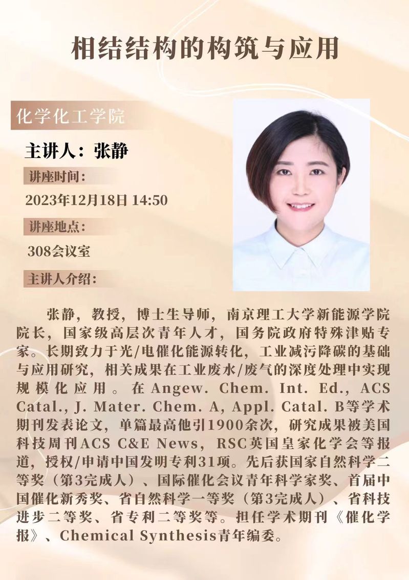 张静教授学术报告预告:相结结构的构筑与应用