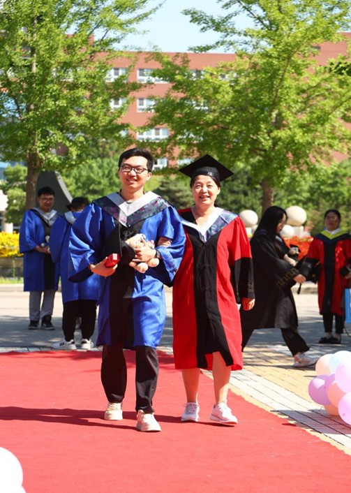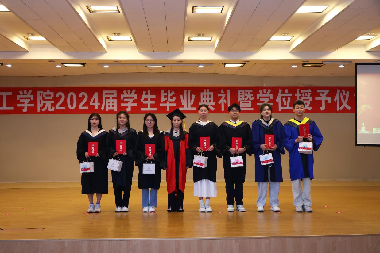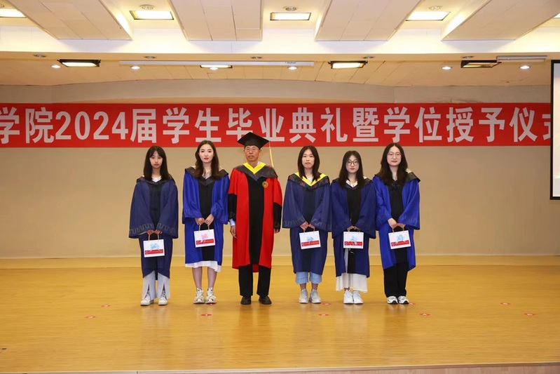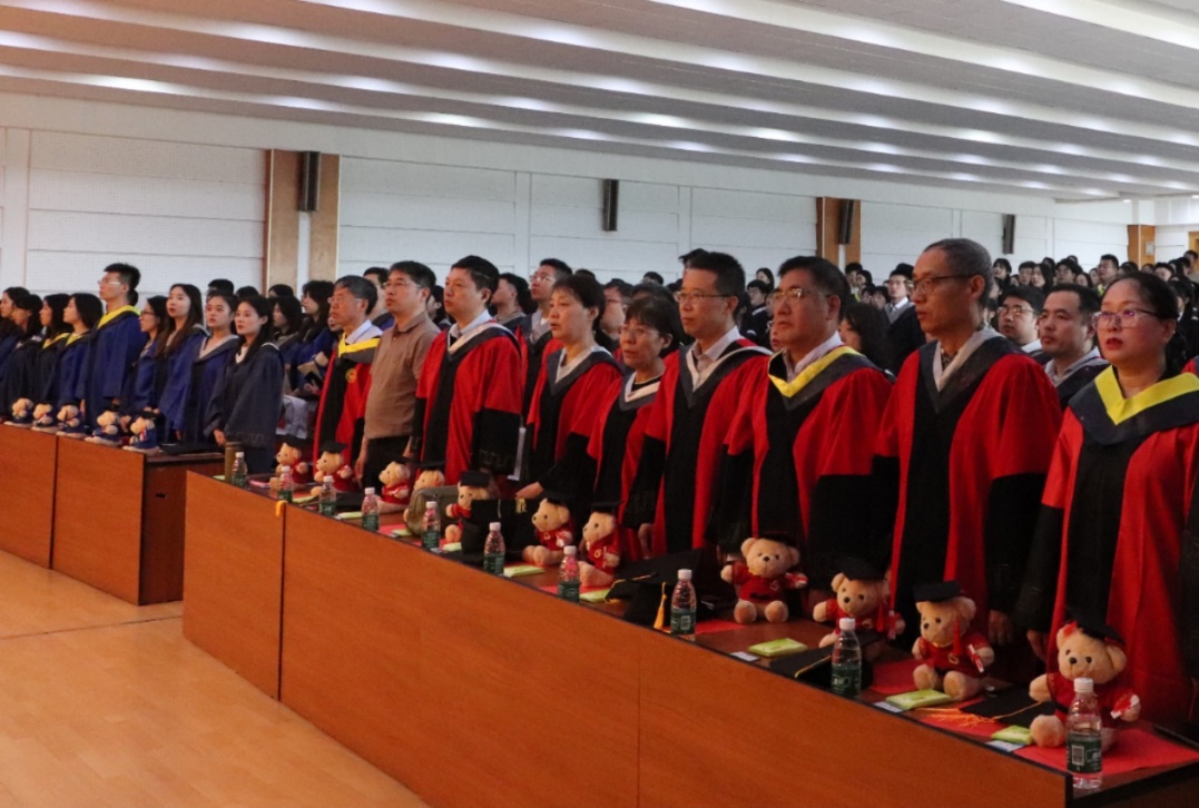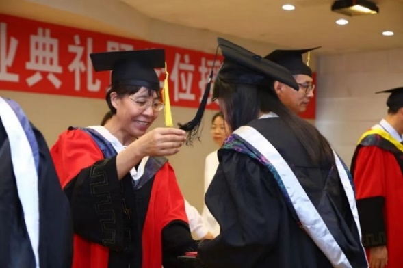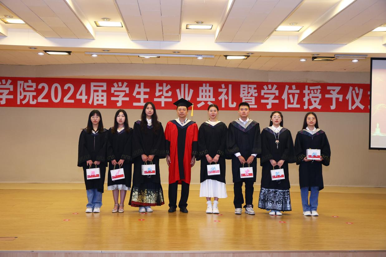 最后,由于湛副经理宣读学位授予决定,至此,学位授予仪式正式开始。赵震教授、杨春才教授、曹中秋教授、刘颖教授、孙秋菊教授、田鹏教授、康艳红教授、李波教授为毕业生移流苏并颁发毕业证书、学位证书,最后合影留念。